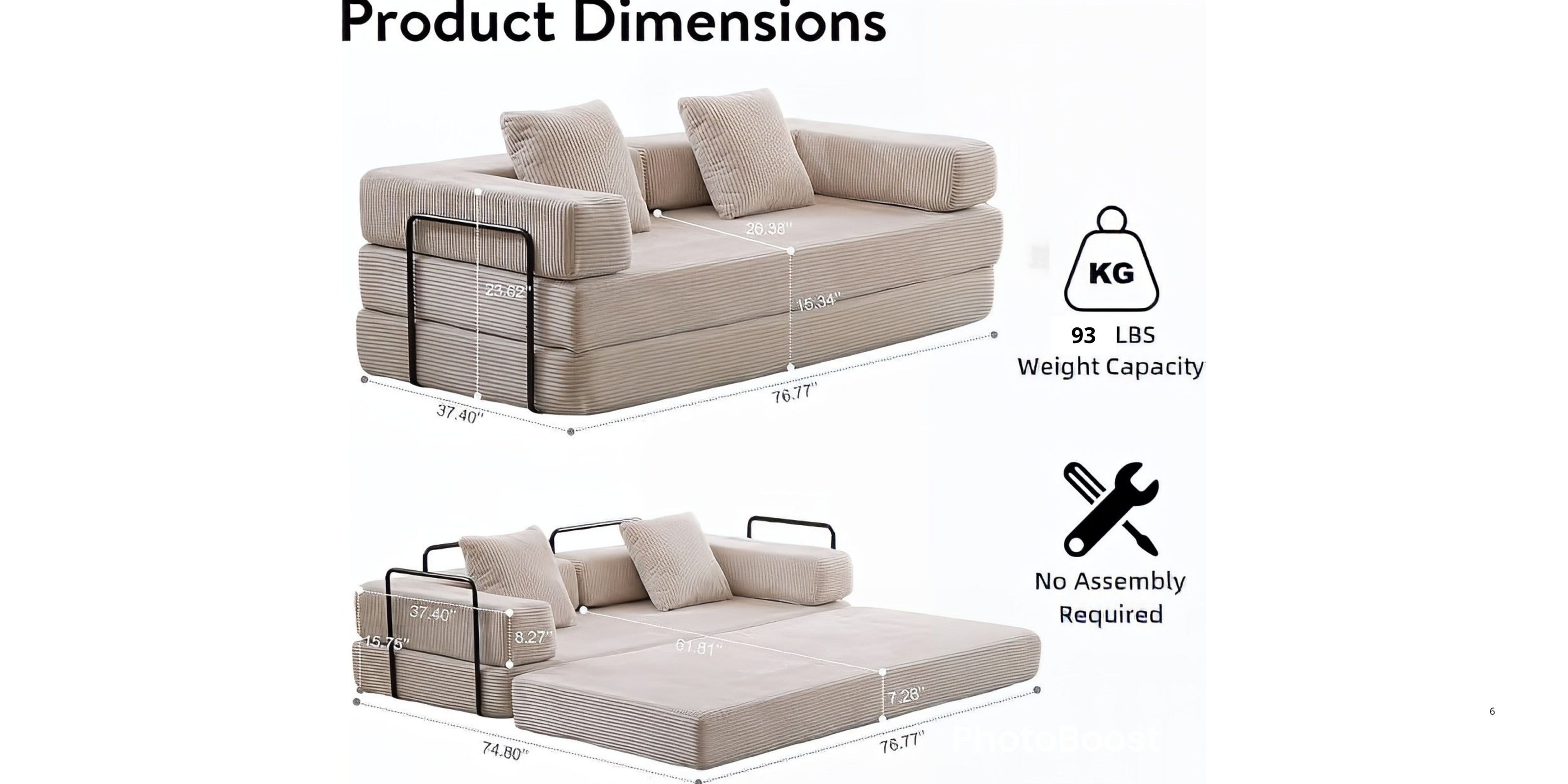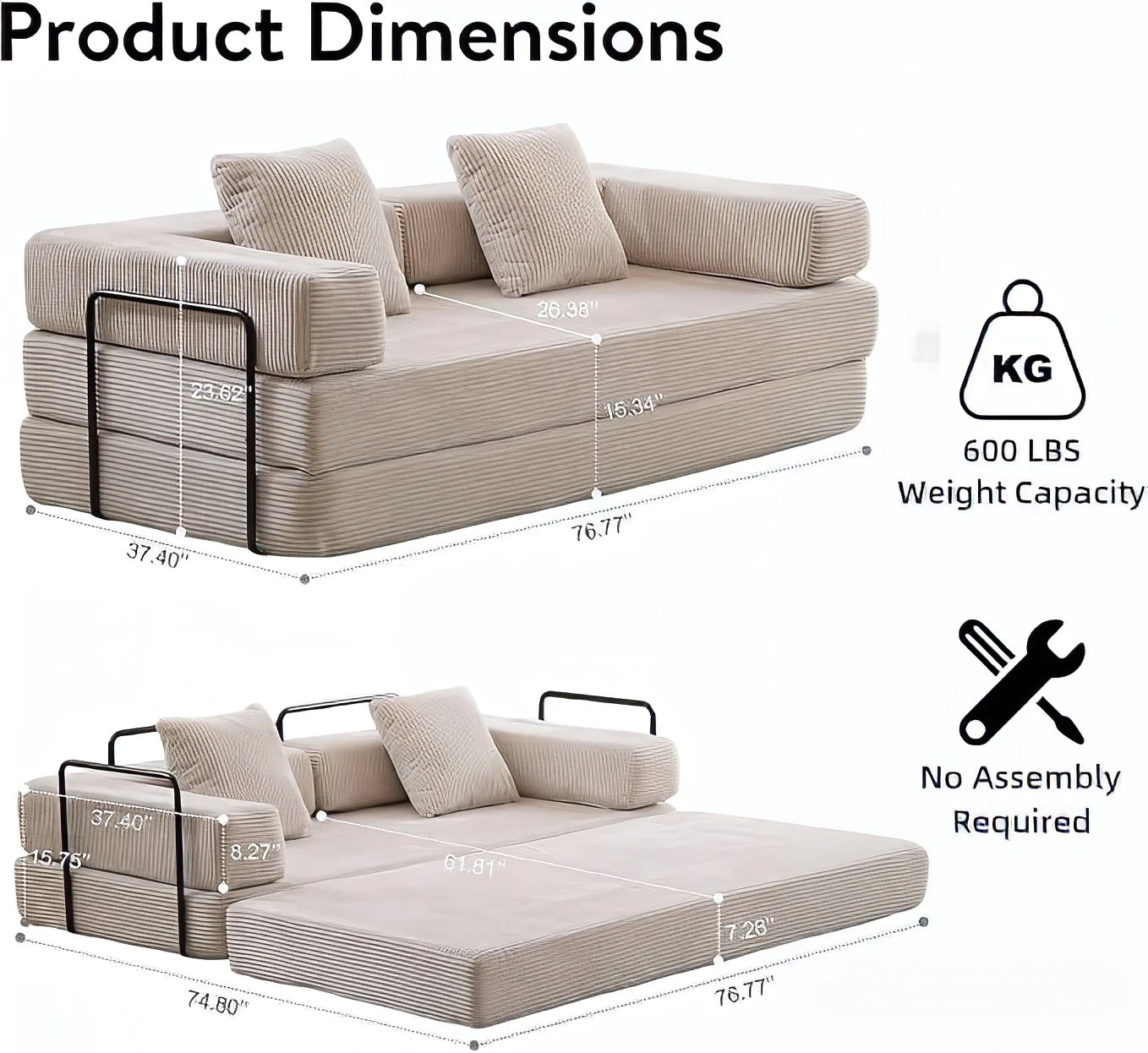 - No Assembly Required: This sofa bed requires no tools or assembly, making it a convenient option for busy lifestyles.